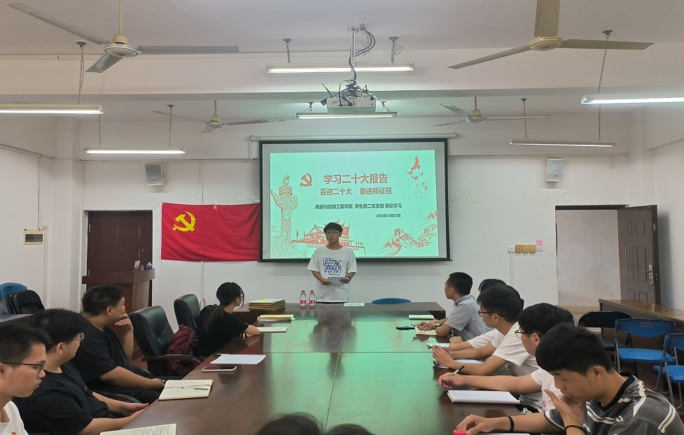 10月25日中午,学生第二党支部在07215教室召开党员大会,传达学习党的二十大精神。学习会由支部书记滕漳红同志主持。